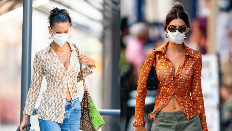 The overlaps within the two fashions’ types have all the time been there – particularly contemplating each lean in direction of ’90s energy staples. However this week they stepped out in virtually similar seems. They have been snapped individually carrying breezy sheer shirts, unbuttoned sufficient to disclose a glimpse of washboard abs. Emily opted for a vibrant orange patterned prime from her personal line, Inamorata, paired with low-rise khaki trousers and trainers, whereas Bella added mother denims and thong sandals to her personal fitted shirt.